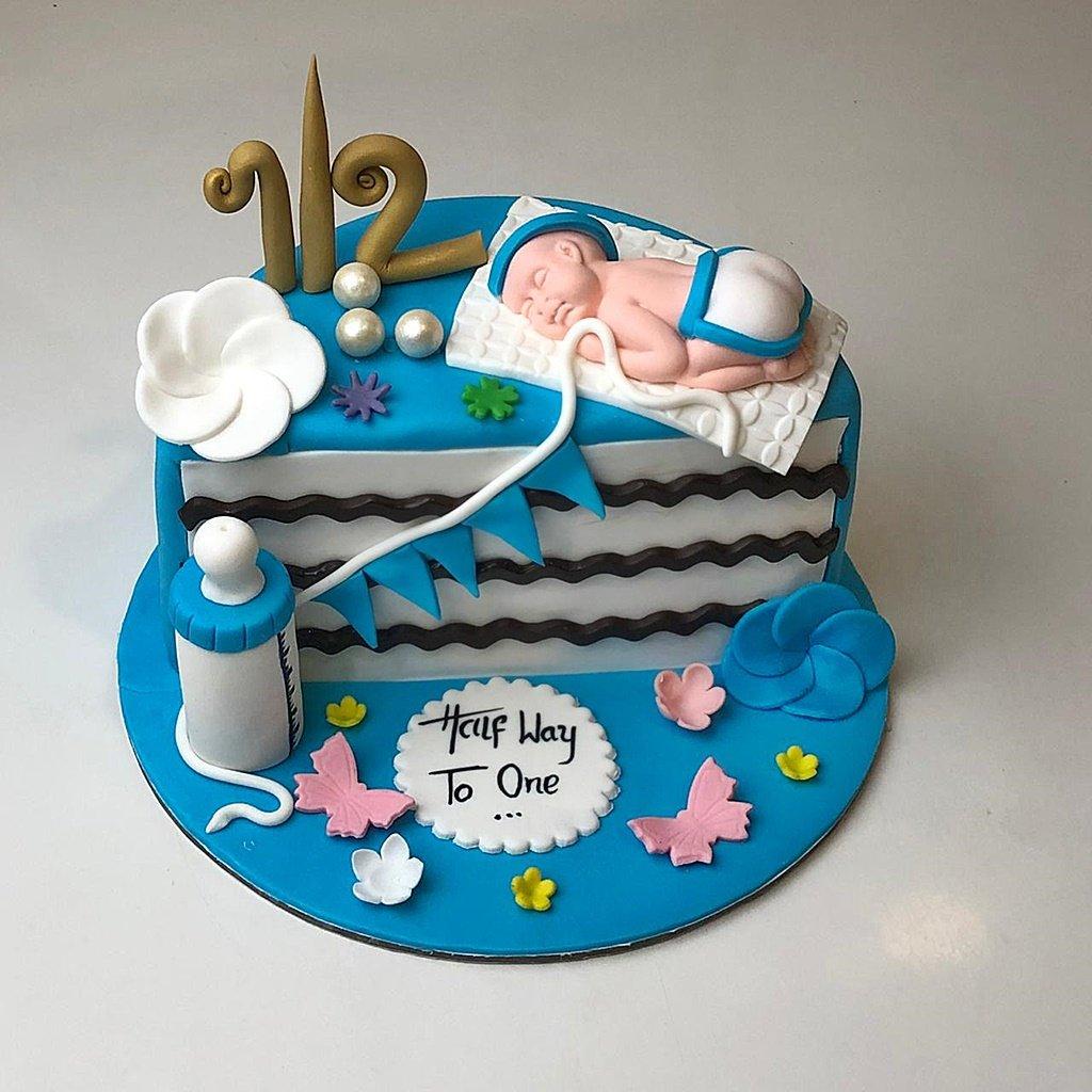 Celebrate your baby’s half birthday in style with the Baby Blue Half Birthday Cake from the Theme Cake Store. Place your order today and let the sweetness and joy fill the air!