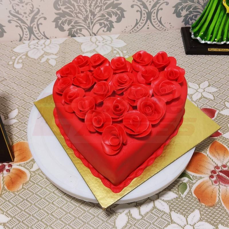 The Hot Red Valentine Heart Fondant Cake is a true work of art, crafted with meticulous attention to detail. The cake is skillfully shaped into a heart, symbolizing love and affection. The vibrant red fondant icing adds a touch of elegance and sophistication, creating a visually stunning centerpiece for your special day.